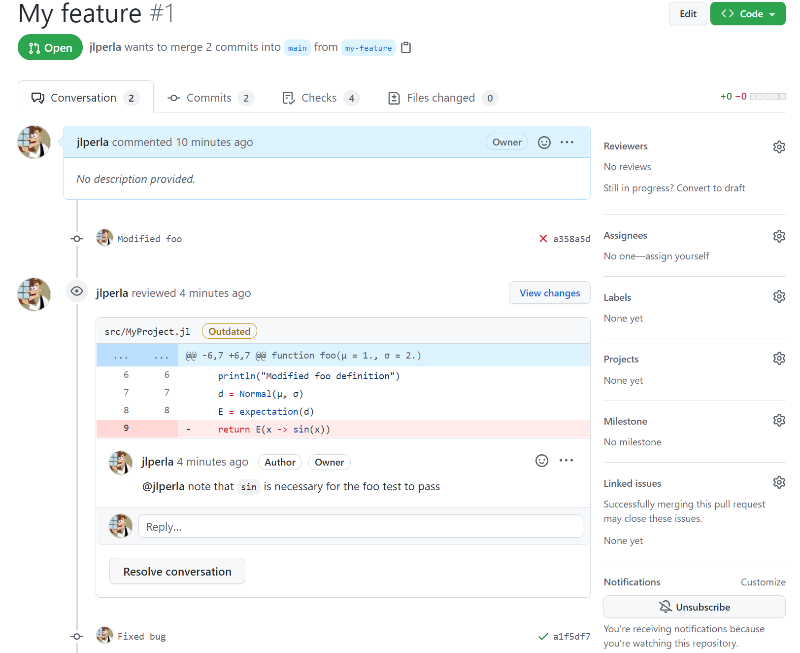 In addition, you will find the testing workflow as an essential element of working on even individual projects, since it will prevent you from making accidental breaking changes at points in the future - or when you come back to the code after several years.