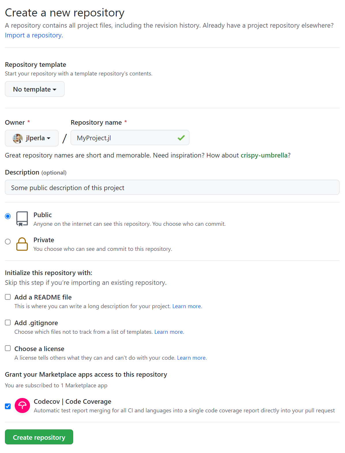 README.md,LICENSE, and.gitignore, since these are handled byPkgTemplates.If available, Grant access to