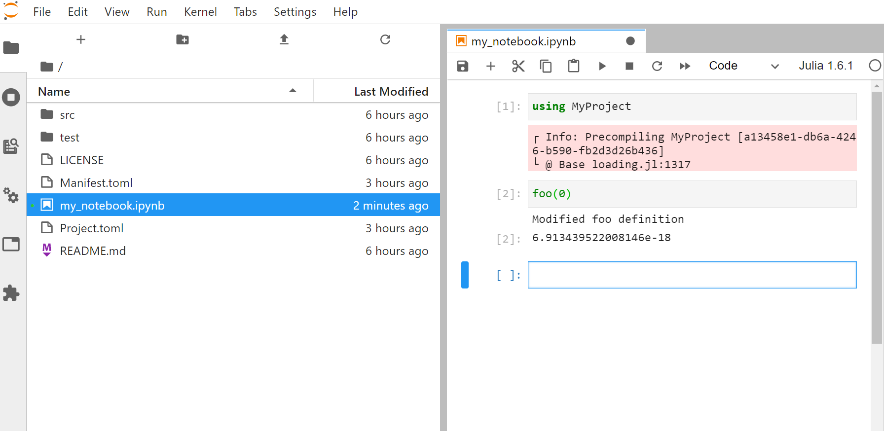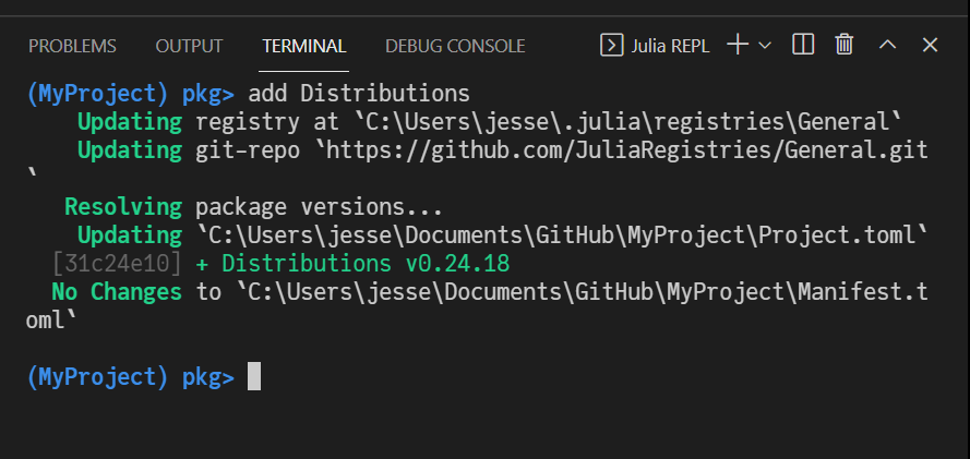 MyProjectfolder, or exiting the Julia REPL (viaexit()) and then