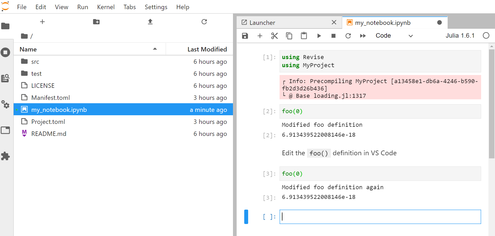 using Reviseprior to theusing MyProject(note that VS Code’s REPL does theusing Reviseautomatically, if it is available).Then run